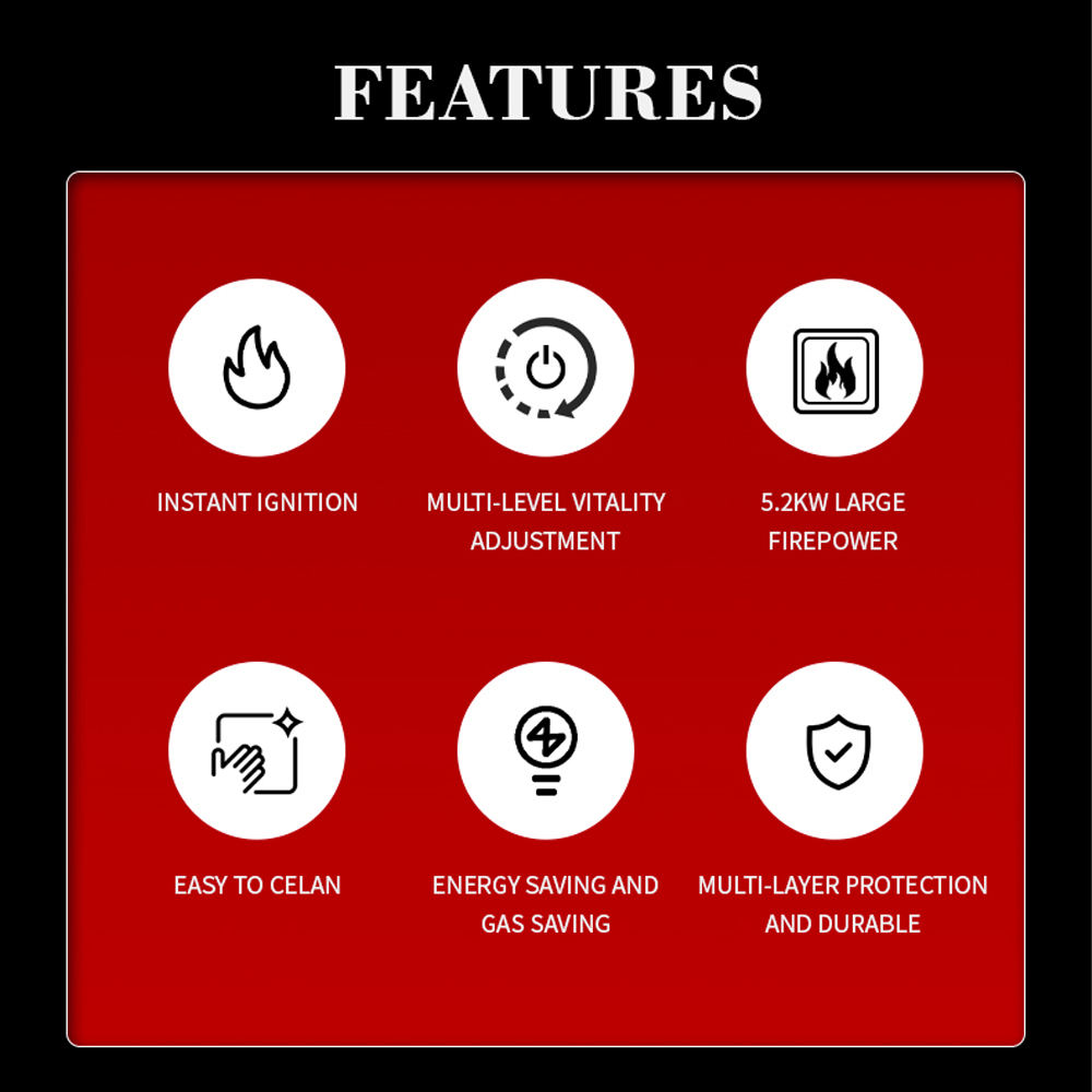 3. Yüksek verimlilik ve enerji tasarrufu: brülör tasarımı optimize edilir, alev eşittir ve yanma verimliliği yüksektir, bu da enerji israfını etkili bir şekilde azaltabilir ve modern ailelerde enerji tasarrufu ve çevre koruma kavramına uygun olarak uygundur.