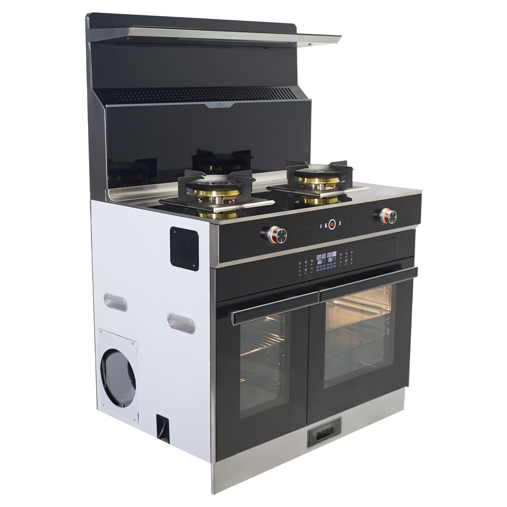 Elektrikli Sobalar Gaz Entegre Fırın Yerleşik Range Hood, bir gaz sobası, fırını ve menzil kaputunu entegre eden çok fonksiyonlu bir mutfak cihazıdır. Mutfak alanından tasarruf etmeyi ve pişirme verimliliğini artırmayı amaçlayan bir gaz sobası, fırın ve menzil kaputunun üç işlevini entegre eder. Restoranlar, oteller, kantinler ve büyük miktarda pişirme ve hızlı servis gerektiren diğer yerler için uygundur. Yerleşik olmak için tasarlanmıştır ve mutfak dolapları veya çalışanlarla entegre edilebilir, mutfağın genel estetiğini ve pratikliğini arttırmak için sorunsuz bir şekilde entegre edilmiştir.